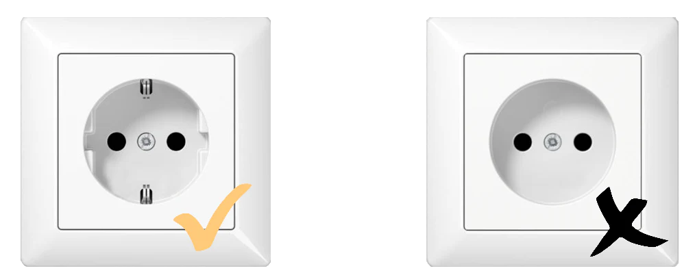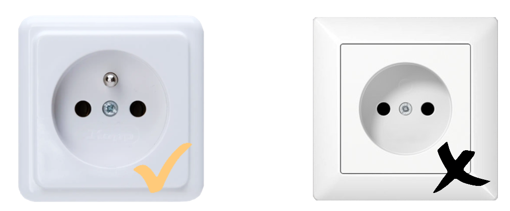 Oui, les produits de mise à la terre Earthle sont adaptés à une utilisation avec des prises mises à la terre en Belgique, en France et au Danemark, tant que la prise est mise à la terre. Vous trouverez ci-dessous une illustration d'une prise belge mise à la terre et non mise à la terre.